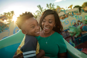 Choose your dinosaur and fly high in the skies on a carnival-themed ride.